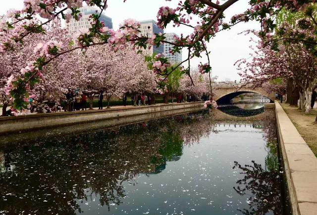 北京北3.5环的元大都遗址公园里,流淌着静静的小月河,河岸绿树茵茵,西区种植着西府海棠、贴梗海棠、金星海棠、垂丝海棠、雪球海棠;东区集中展示新优品种,火焰、露易莎、春雪、粉屋顶、粉手帕、凯尔斯、亚当、印第安魔力、道格等海棠;还有丁香、连翘、桃树、柳树。这一段小月河有个很文艺的名字:海棠花溪。