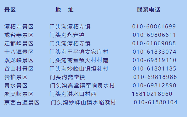 门头沟景点已经开放,自2020年4月27日起,景区部分有序开放。每日开放时间为:08:30 – 16:30。开放范围:潭柘寺内露天、空旷区域;景区塔林东停车场、古香道。暂不开放:潭柘寺内各殿堂室内、各院落;龙潭、塔林、山林、办公区、僧团生活区域;景区塔林西停车场等功能区域。宗教活动场所暂不开放 ,暂停所有宗教活动。