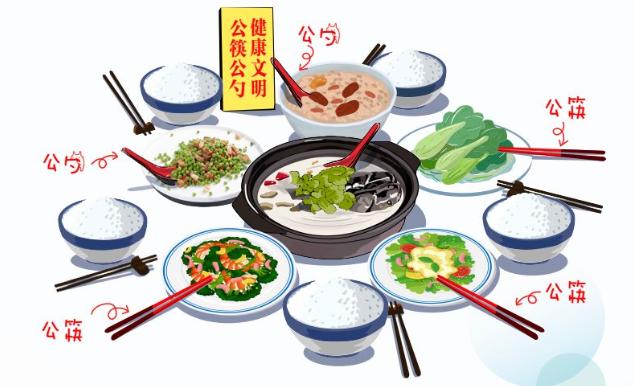 5.两人及以上共同就餐时,要记得使用公筷、公勺,减少接触传播,兴新风尚,提倡分餐制;外出就餐时如果能带上自己的筷子和勺子就更有利于健康,尤其是对于孩子。
