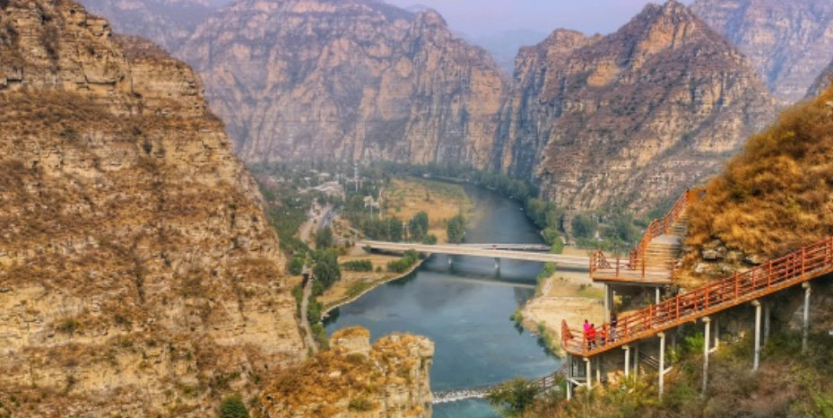 天堑波光摇落日,太行山色照中原。银河吊桥揽星月,乐谷山水美名传“银河”玻璃吊桥位于北京房山乐谷银滩旅游景区内的天子峰与情人峰两峰绝壁之间,桥长158米,海拔高达300余米,桥面均为玻璃构造,且使用了高强度、防冲击、钢化三层夹胶玻璃,坚固无比、安全可靠。乐谷银滩情人谷两端是绝壁悬崖的两座山峰,俏美嶙峋,相传由一对位列仙班的佳偶为镇守这里的山水幻化而成,千百年来只能隔空遥望,而“银河”玻璃吊桥的落成,天堑由此变通途,遥望由此变永恒,堪称现代工程与大自然奇景的完美结合。阳光明媚之时,遥望吊桥,晶莹剔透、熠熠生辉,宛若天际的一条银河,是美学,更是绝学。走在桥面彷如悬空而立、时空穿梭。体验凌空而行的同时,还能游览碧水奇峰的景区,感受情人谷的柔美,领略乐谷银滩的壮美 。