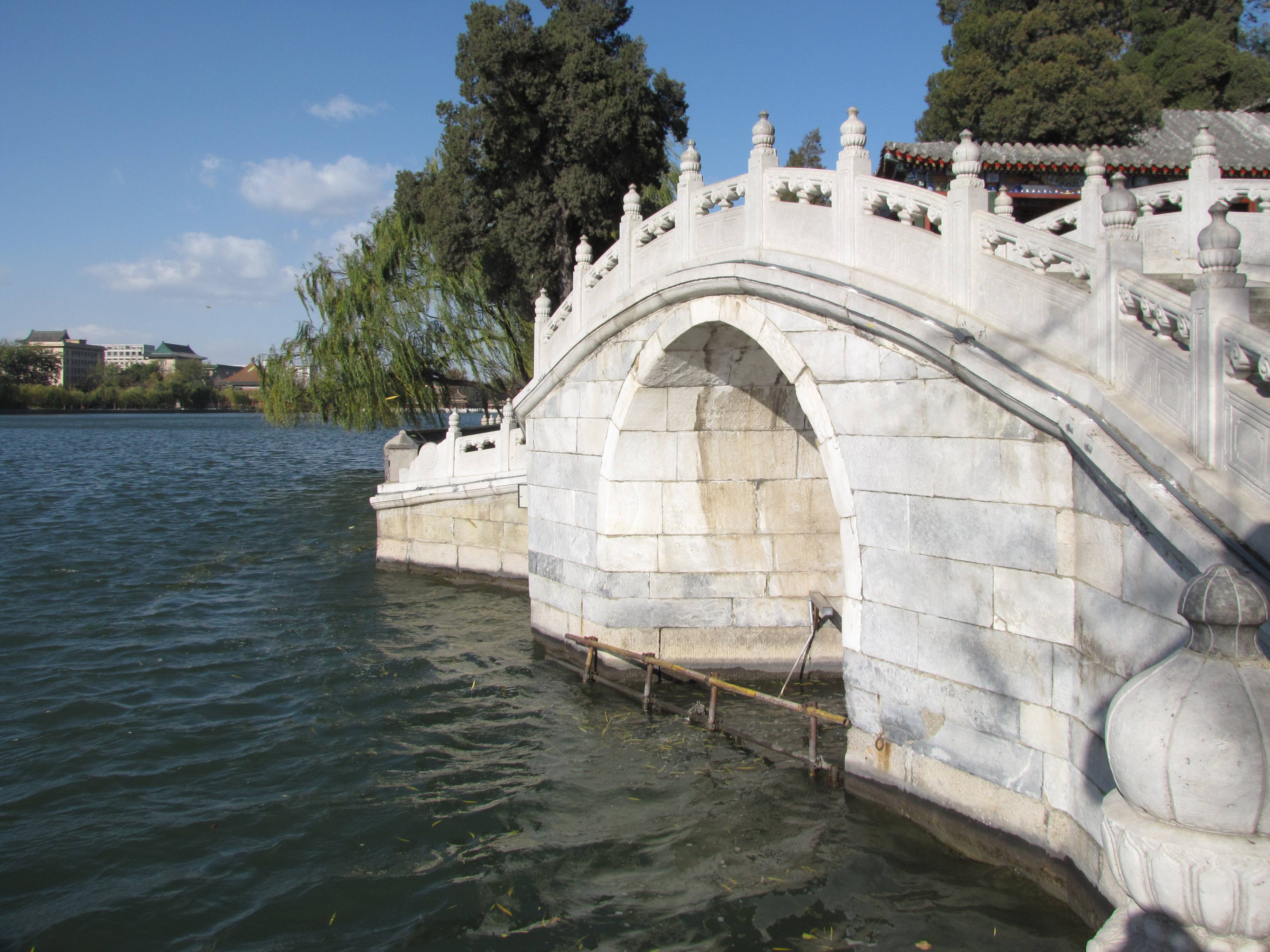 北海于金大定六年(1166年)开始兴建,清乾隆朝(1736年-1795年)又大规模扩建,从而奠定了北海的整体格局及建置规模。北海历经金、元、明、清几个朝代,一直是封建帝王及皇室成员游幸驻跸、处理政务及祭祀的独家御用宫室,直到中国最后一个封建王朝灭亡后,于1925年8月1日才开辟为对社会民众开放的公园。距今推算,北海已有800多年的历史了。北海既是一座封建王朝的著名皇家园林,同时又是一座驰名中外的典型中国自然山水式园林。在造园体系上,北海同中海、南海一脉相连,遵循了中国古典园林“一池三山”的规制。北海公园占地面积68.2公顷,其中水面38.9公顷。全园以琼岛为中心,四面湖水环抱,周围陆地围绕,白塔为代表性的标志居于山巅。园林布局巧妙,景致协调;殿宇威严,金碧辉煌;古树名木,枝繁叶茂;叠石岩洞,浑然精巧;文物精美,绝伦独到;名人轶事,世代流芳;文化荟萃,内涵深奥;虽由人做,宛自天开。正因为北海具有悠久的文明历史和极高的文物价值及丰富的文化底蕴,1961年被国务院公布为第一批全国重点文物保护单位,1992年又被北京市政府评定为北京旅游之最---“世界上建园最早的皇城御苑”。