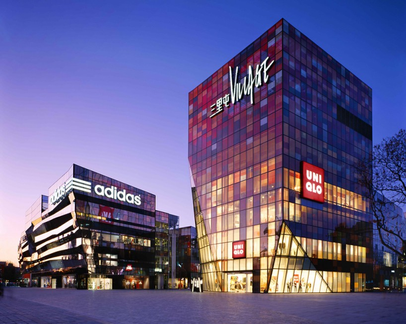 三里屯village由19幢低密度的时尚当代建筑布局而成,造型独特,错落有致。顾客既可以在户外的商业街区随心漫步,也可以享受室内餐饮和娱乐的空间。花园、庭院和小巷点缀其间,格局开阔,整体设计凸现空间无界的概念,让人漫步其中,体会无穷乐趣。从经典到前卫,三里屯village带给人的感觉是持续变幻出新的,体验也是多方位的。夜色中的三里屯village,是潮人的天堂。