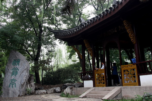 有“醉翁亭”、“兰亭”、“沧浪亭”、“独醒亭”、“二泉亭”、“吹台”、“浸月亭”、“百坡亭”等十余座。这些名亭都是以1:1的比例仿建而成,亭景结合,相得益彰。
