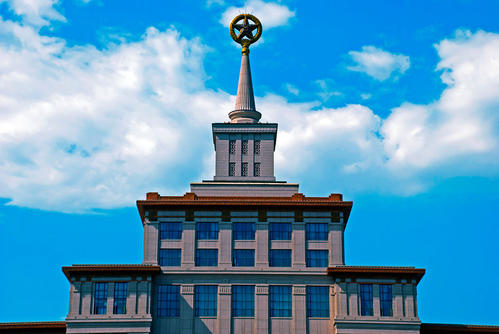 地铁:1号线、9号线“军事博物馆”站站口出站。