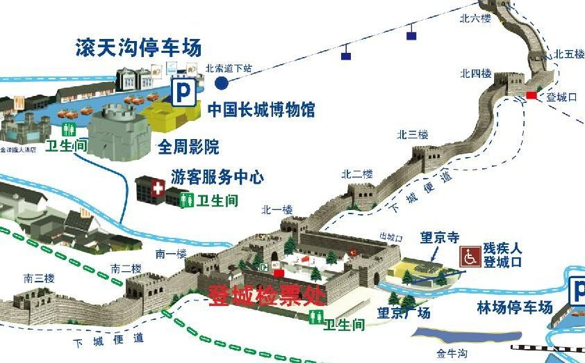 八达岭长城附近有比较多的停车场,其中八达岭长城汽车站附近的停车场离等长城口不远,走路过去十分钟左右,900米的距离
