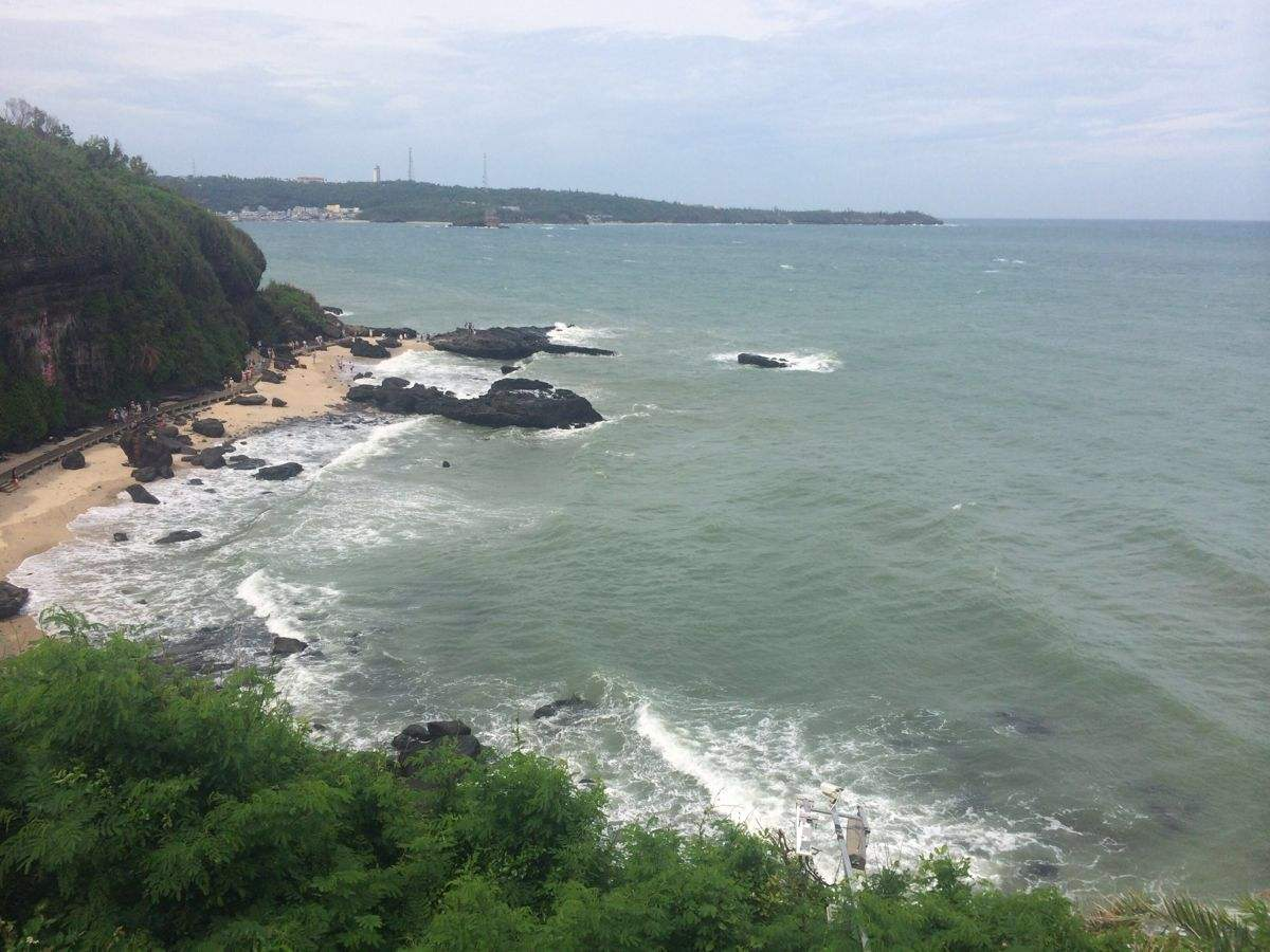 过了此地,右侧有阶梯去往景区大门,但是前方还有个叫做平台听涛的景点,是一个大的平台,不要遗漏了。尤其是退潮后,在大小坑洞里,会看到活珊瑚及来不及撤退的鱼虾们,十分有趣。