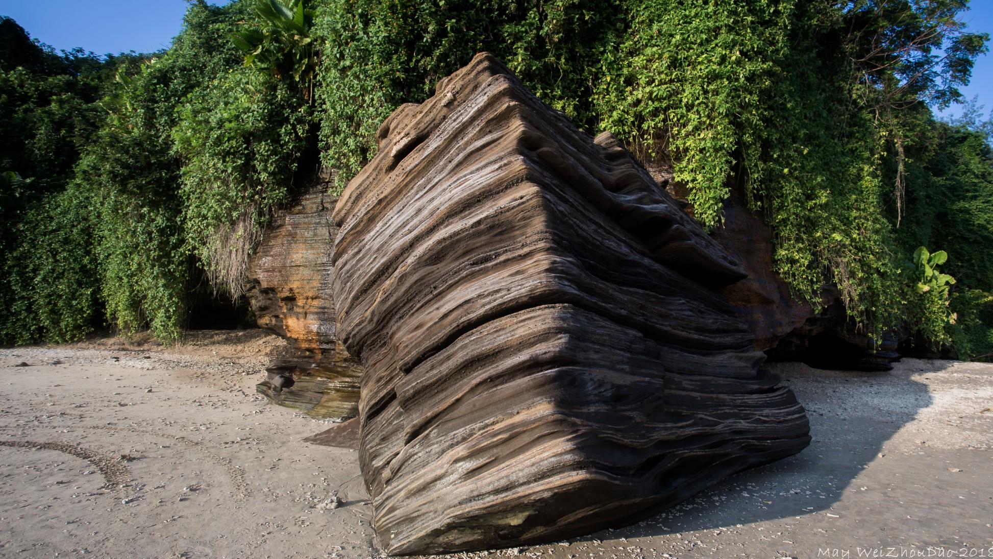 “滴水丹屏”曾被列为北海八景之一,闻名遐迩。游玩“滴水丹屏”一带的海滩上,遍布着奇形怪状的“火山蛋”,经地质学家研究,这些“火山蛋”是火山喷发时,未全部熔化的岩浆射向天空后掉下来冷却形成,既具有科考价值,是研究火山喷发难得的实物,又具有旅游观赏价值,称得上是涠洲岛“火山博物馆”中的珍品和无价之宝,也是全国最大的一组“火山蛋”群。