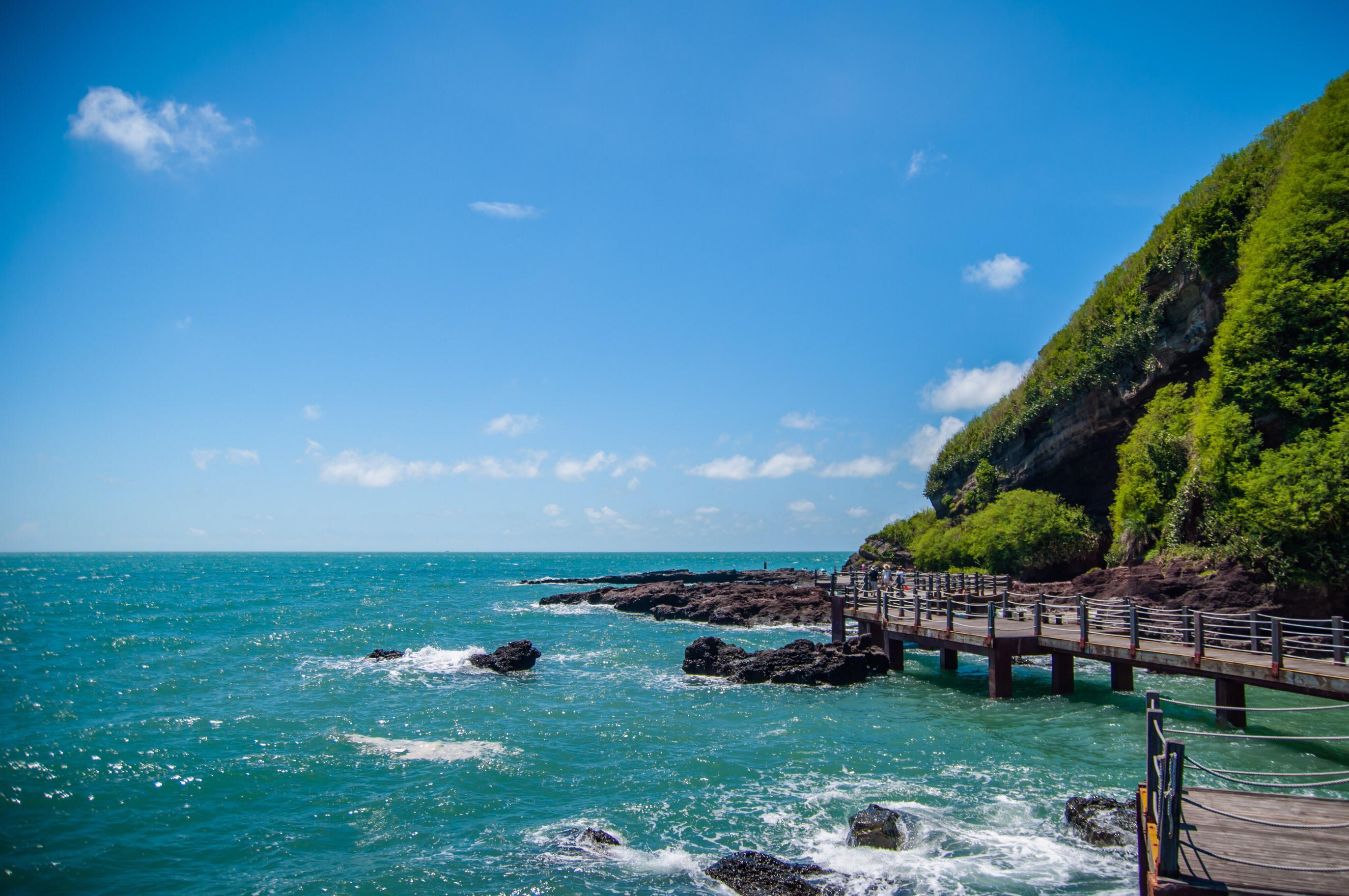 涠洲岛-中国最大、最年轻火山岛。涠洲岛由多次火山喷发堆凝而成。涠洲岛海蚀、海积及溶岩景观奇特,为中国独绝。其沿海海水碧蓝见底,海底活珊瑚、名贵海产瑰丽神奇,种类繁多;南部海蚀火山港湾奇特优美,沙滩迷人,边漫步边拾海螺、捡贝壳。