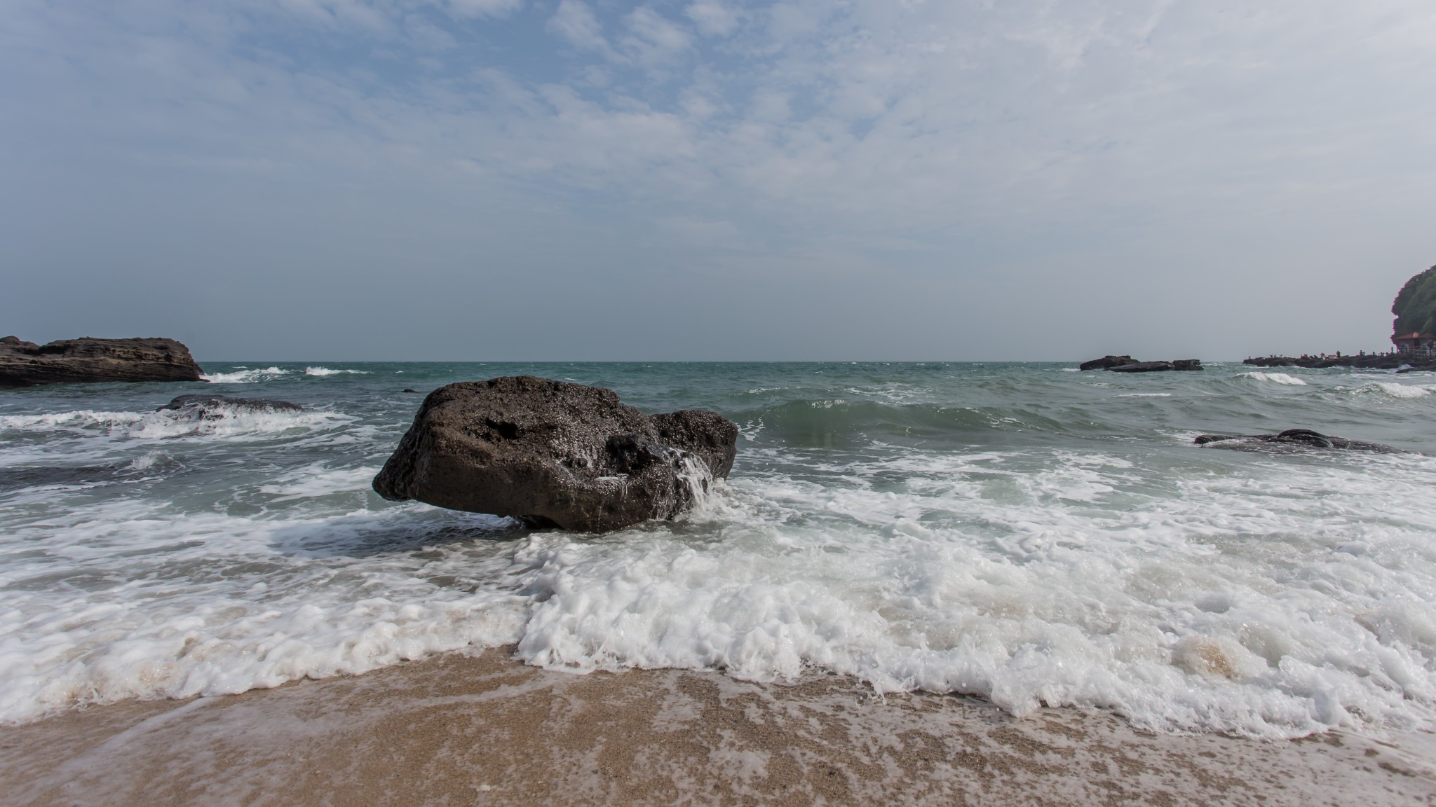 在五彩滩,可以同时看到海蚀崖、海蚀洞、和海蚀平台三位一体的地质结构;还可以看到涠洲先民就地取材修建房屋而留下的古采石场。