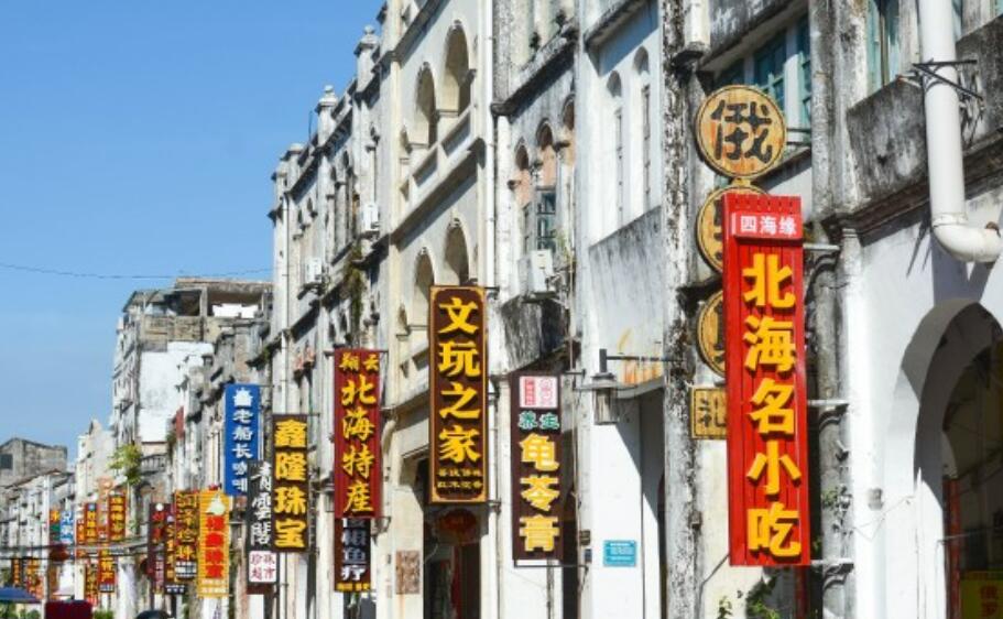 北海老街——珠海路是一条有近二百年历史的老街,始建于1821年,初建时称为升平街,只有200米长,4米宽。随着各历史时期的不断发展,现已成为长1.44公里,宽9米,沿街全是中西合璧骑楼式建筑的商业老街。