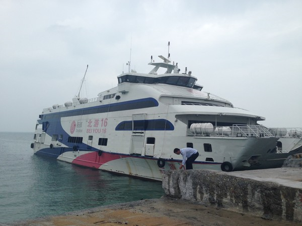 飞字头的小船为全封闭式船舱,因为自身的船体重量比较轻,船舶感觉是浮在水面,所以在有风的情况这种船是比较颠簸的。而且根据游客反映这是最容易晕船的。船长37米,宽7.2米,载客定额326人,分上下两层,航速30节,可在6级大风以下航行。