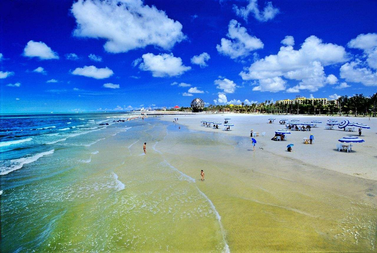 第二种:扑腾大海。可以下海游泳,但不宜秀泳技(比如拼命往海深处游、或者长距离的快速连续游)。适合冲冲浪花、扑腾扑腾大海。海滩公园和侨港海滩可以。它俩也是滩长平、沙细白、水温净、浪柔软,但目前还没有配备救生员,不建议独自下海。