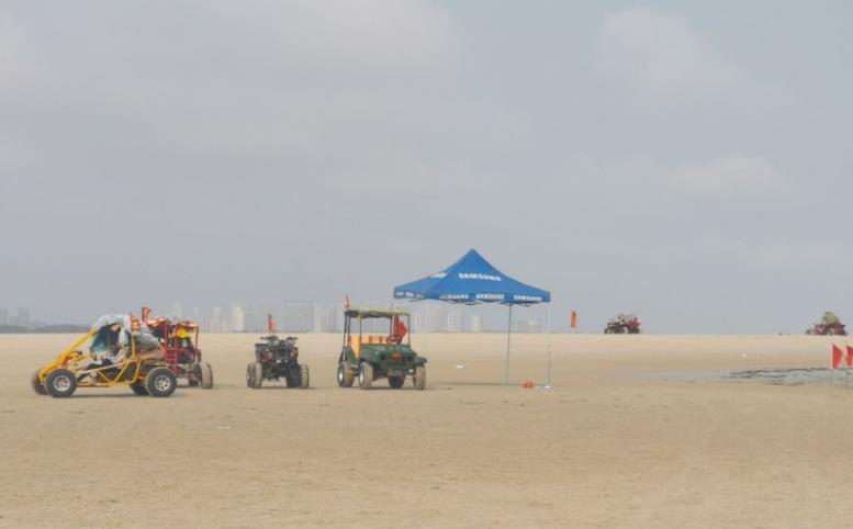 银滩公园那儿的海滩,“滩长平、沙细白、水温净、浪柔软”,而且最重要的——还有救生员。