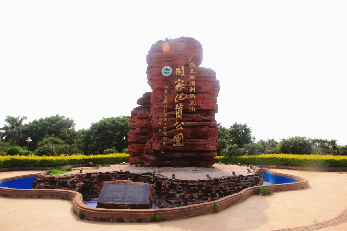 在涠洲岛的主要标志周围,广场周边火山爆发后散落着沉积火山岩,与附近的热带珍稀植物和南湾海港形成对比,成为岛上兼具观赏价值和科学价值的新景区。