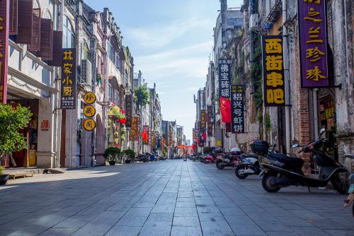 3.北海老街。北海老街位于珠海路及中山路区域,是一条始建于1821年的街道,这条1.44公里长的老街两旁,分布着英法德等国领事馆旧址、德国森宝洋行旧址和天主教堂女修院旧址等许多中西合璧的骑楼式建筑,见证了北海曾经的繁华。如今的老街已被开发成一条特色的商业街,出售各种商品,你也可以在这里吃到比如香辣花螺、虾饼、猪脚粉等各种当地美食。