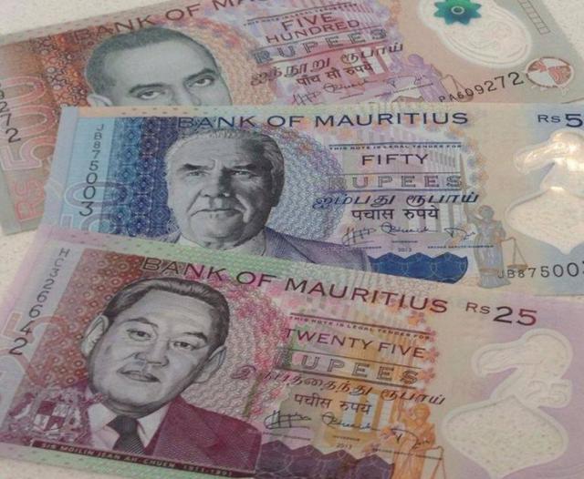 毛里求斯的流通货币是毛里求斯”卢比“,货币代码为MUR,货币符号为Rs。纸币面值有25、50、100、200、500、1000和2000卢比,其中25卢比的纸币印有华人部长朱梅麟的肖像。毛里求斯也是唯一一个在货币上印有华人肖像的非洲国家。