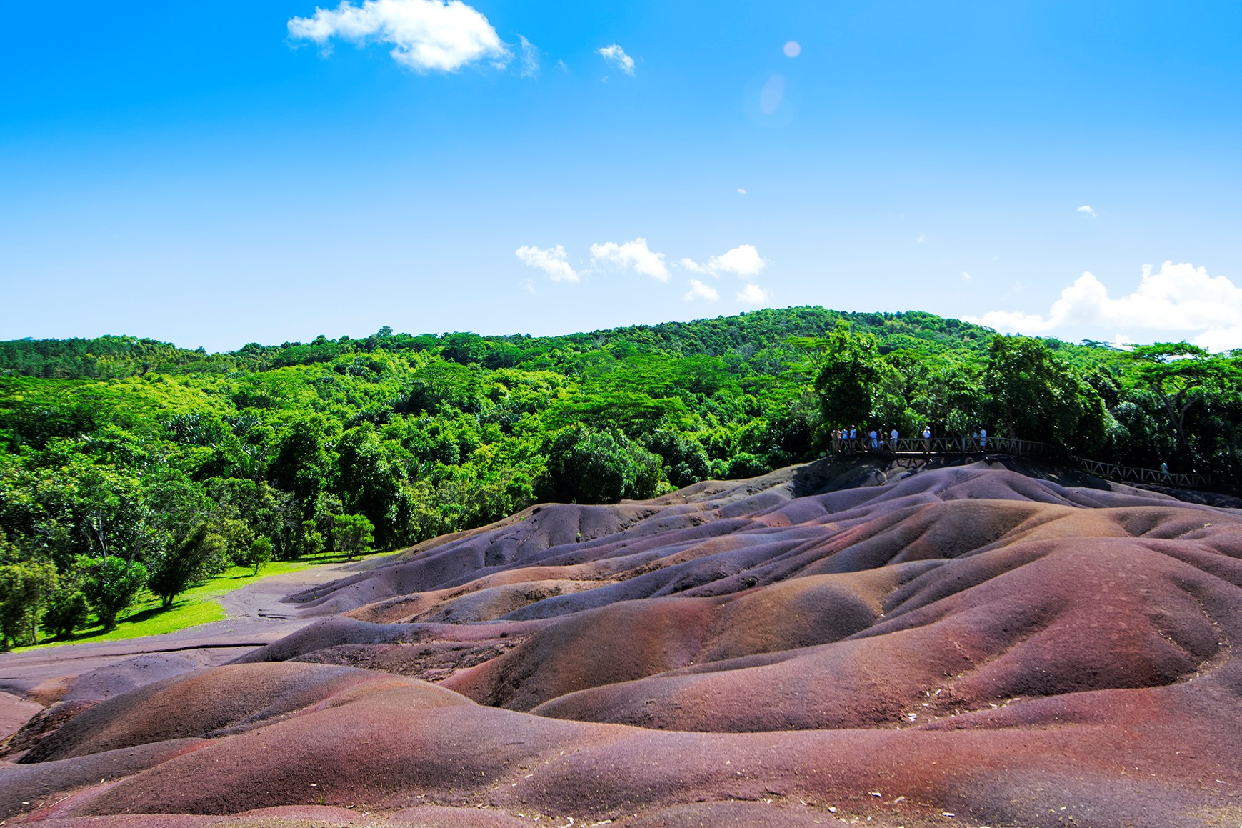 景区位于毛里求斯西南山区的Chamarel镇,地处黑河山脉之中。开车进入景区,途经,约三四公里即可看到浑然天成的波浪式起伏的彩色土包,这里是景区内一处封闭式的小公园,需验票才能入园。公园中央是木栅围起的彩色土,两侧山坡上各有一处观景台,可以俯瞰拍照,左侧的观景台上还设有餐厅和纪念品店。
