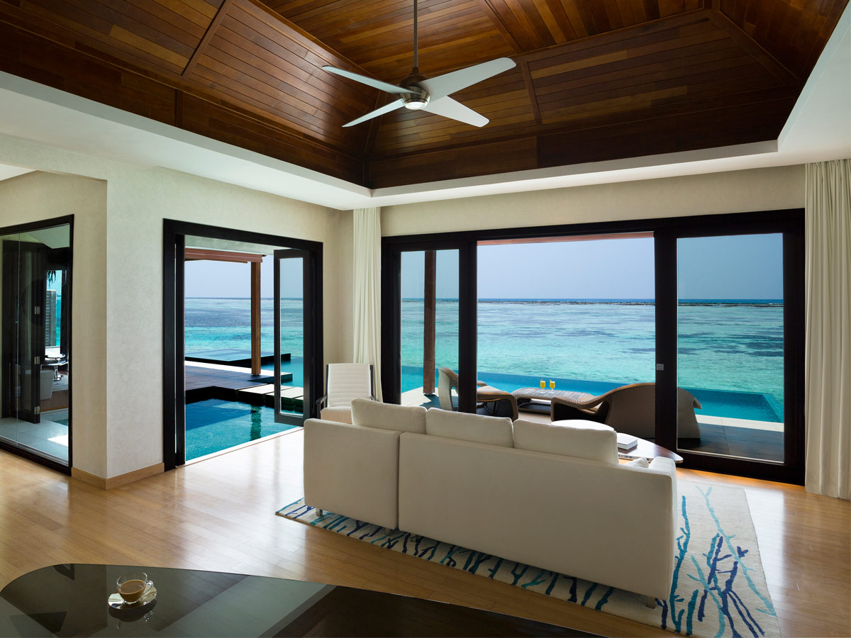 在你的私人平台上休憩,欣赏眼前的画卷:海天一体的画布上洒满了深深浅浅的蓝色。